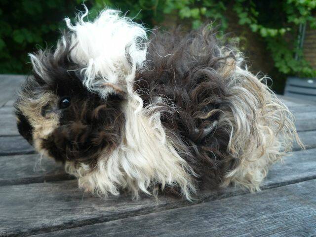 Merino: Een Merino is eigenlijk een Tesselcavia met een kruin op de kop. De vacht is lang en krullend.